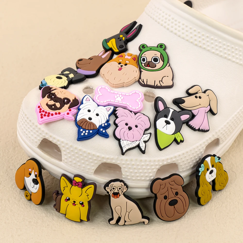 1/100pcs Dog Pin for Shoe Corgi Bulldog Dachshund Chenery Dog Shoe Charms for Kids Women Men Buckle Sandal Accessories Ornament