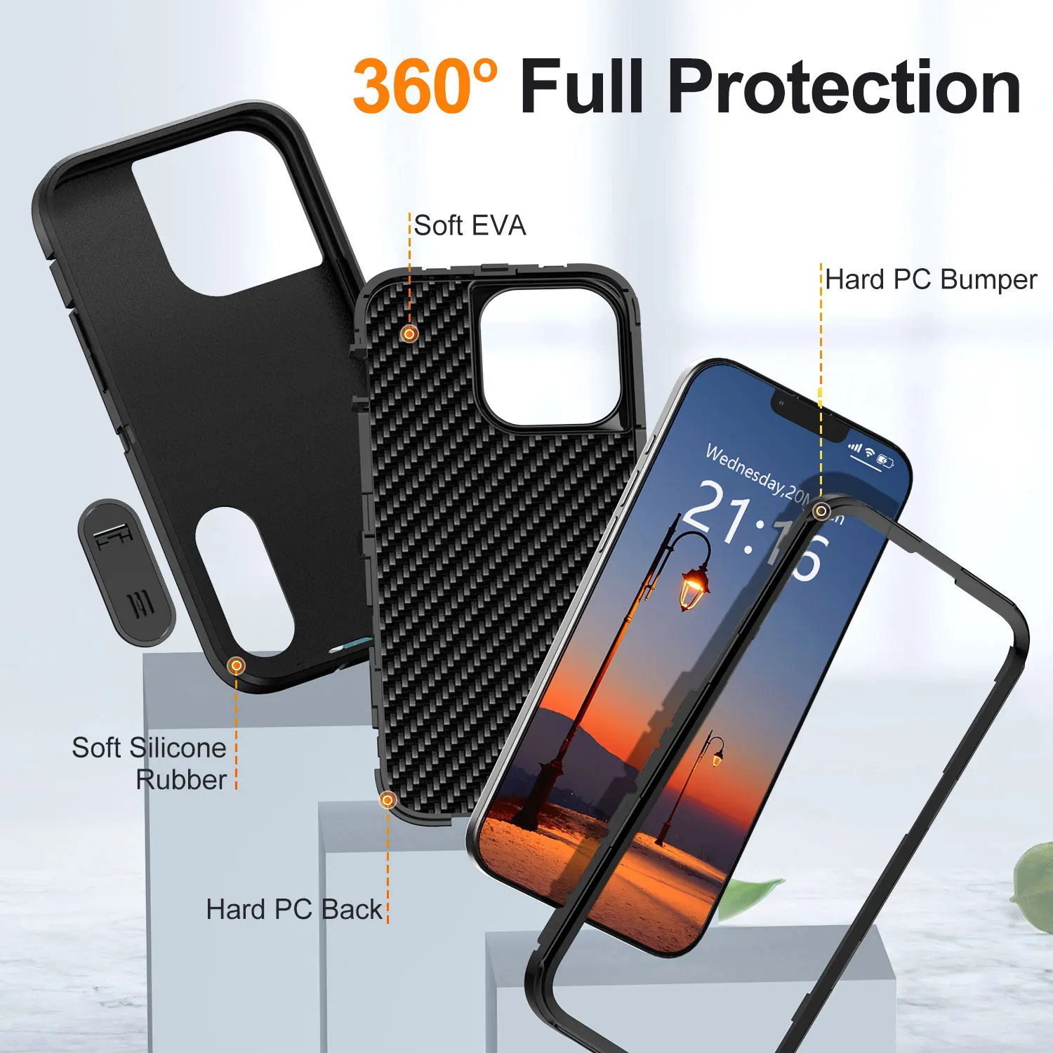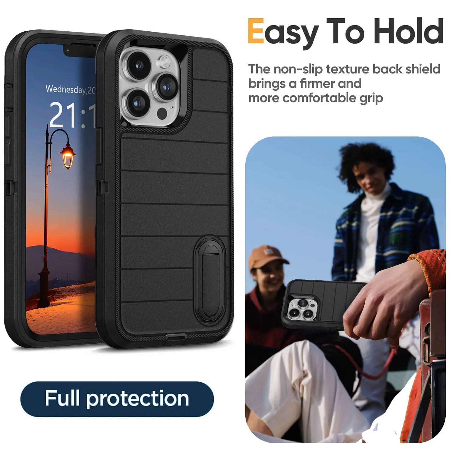 For iPhone 13/iPhone 13 Pro/iPhone 13 Pro Max 5G 3-Layers Heavy Duty Protective Kickstand Phone Cover Black Case