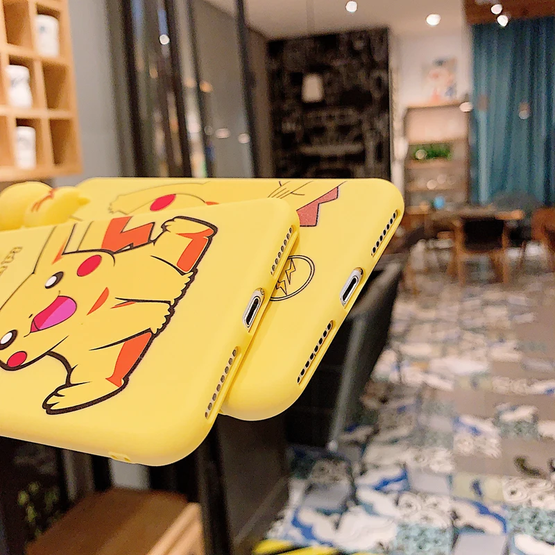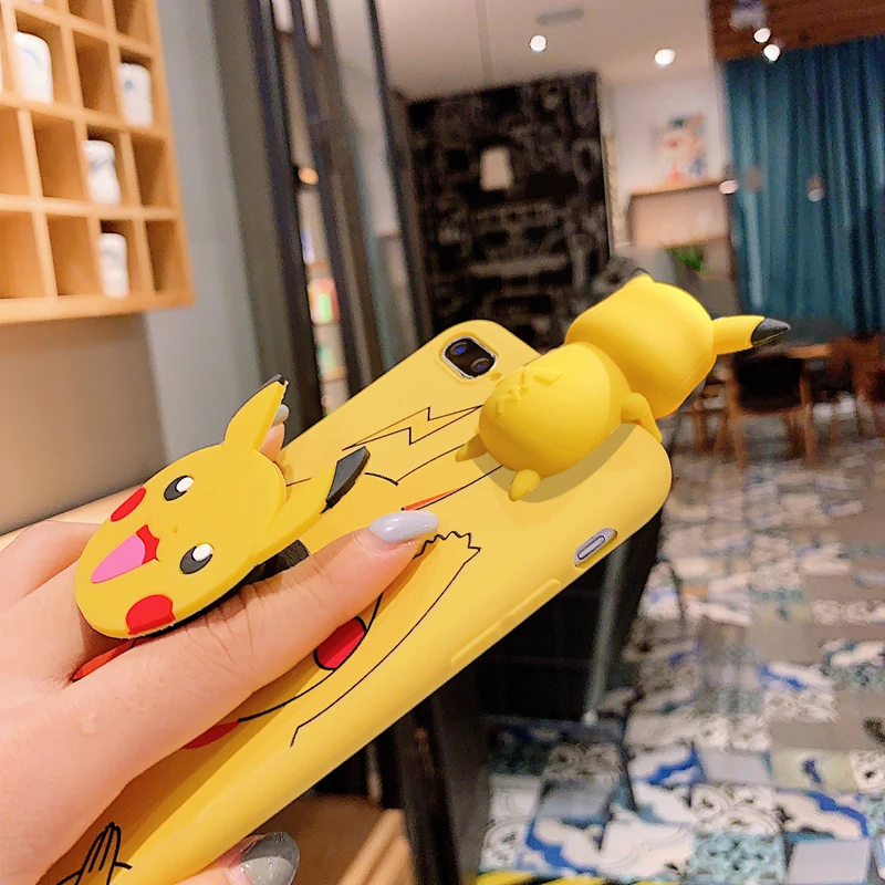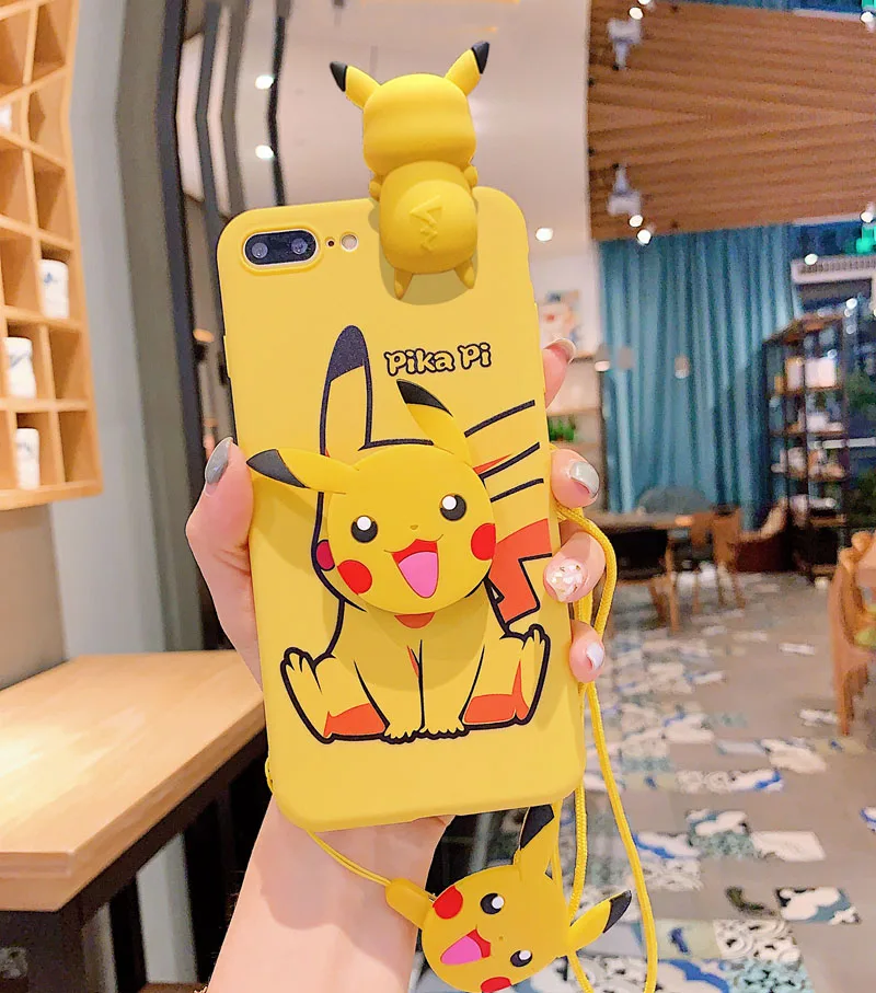 For iPhone 6 6s 7 8 X Xs Max XR 11 12 13 14 15 16 Pro Max SE Pokemon Pikachu Phone Case With Holder Rope