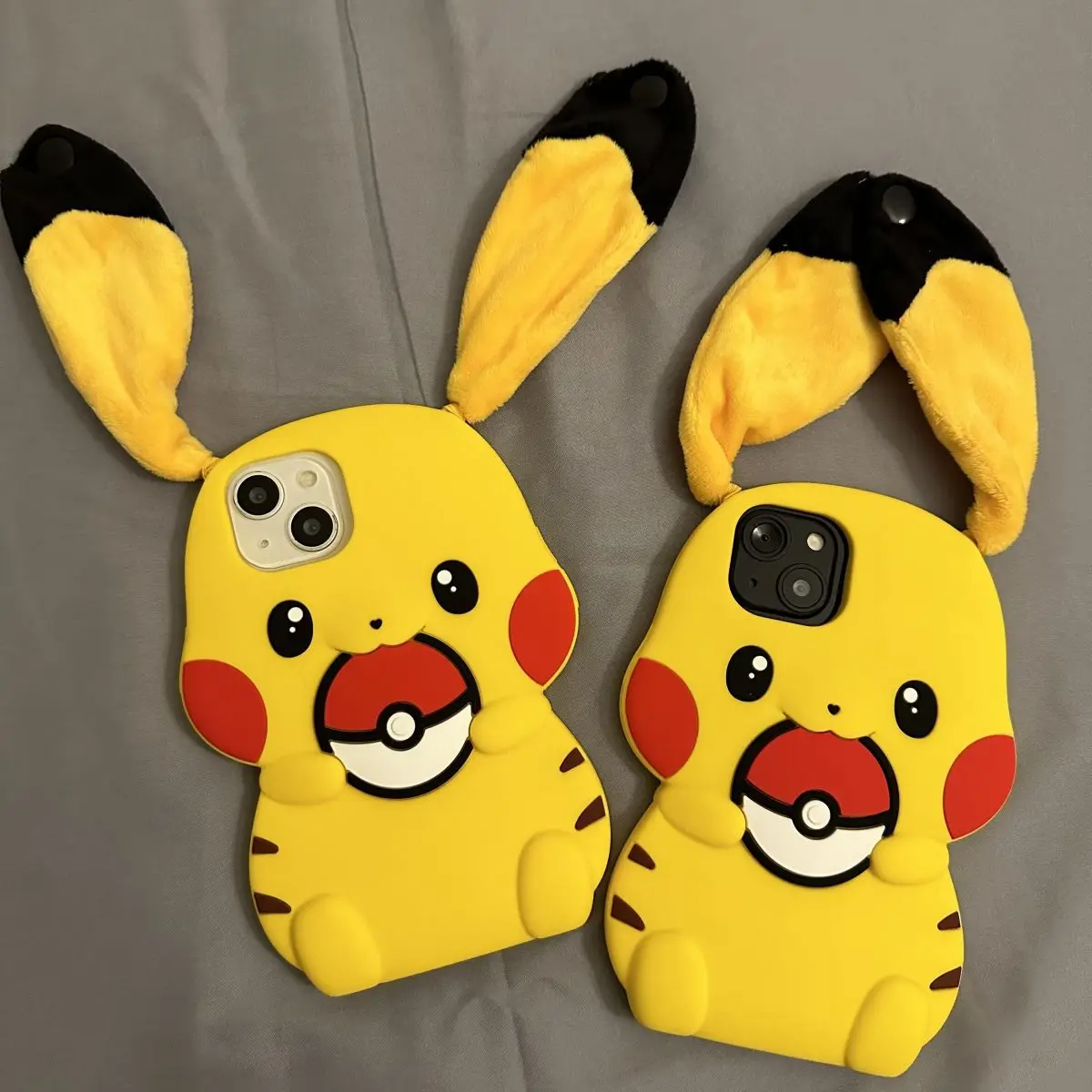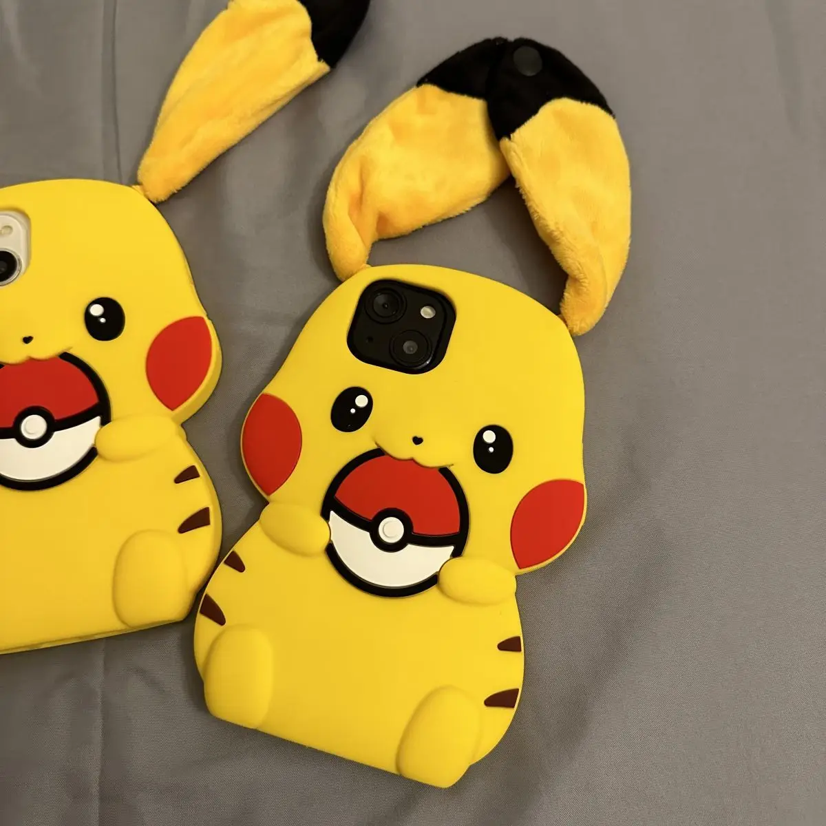Kawaii Pokemon 3D Shape Anime Cartoon Pikachu Cute Long Ears Phone Case for Iphone 11/12/13/14/15pro Promax Festival Gift