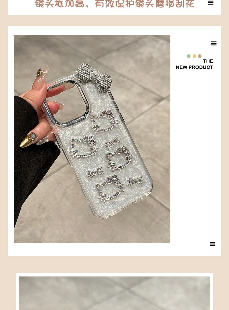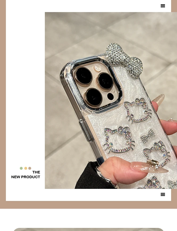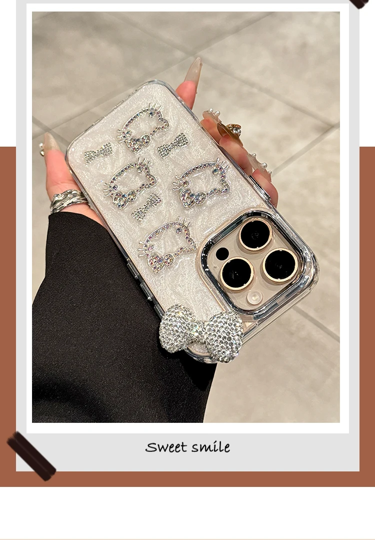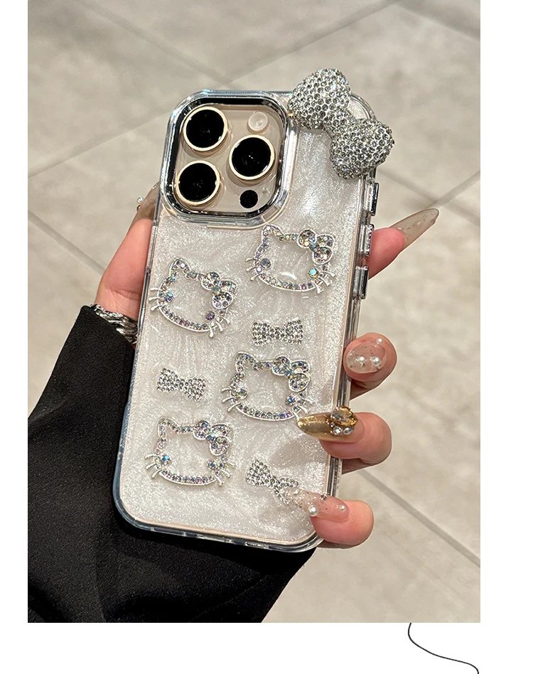 Sanrio Hello Kitty Anime Diamond Three-dimensional Phone Case for IPhone 11 12 13 14 15 Pro Max Plus 16Pro Shockproof Cover Gift